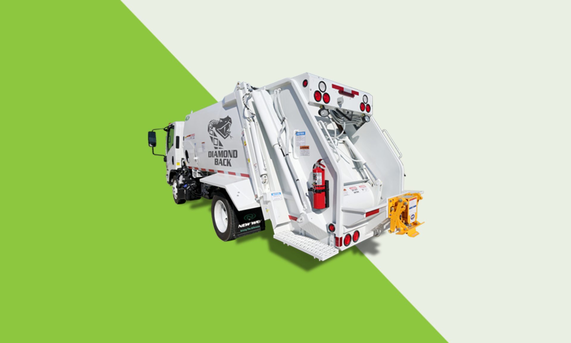 When you need quality, affordability, and maneuverability, the New Way Diamondback is your go-to truck. This compact, low-profile powerhouse features a low load-sill threshold and has a compaction rate of 800 lb. per cubic yard on the standard unit and 1,000 lbs per cubic yard on the high-compaction model.